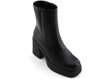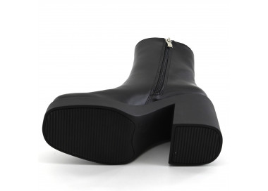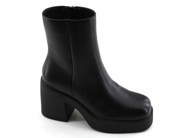 Confeccionada en cuero. Caña media baja con acceso por cierre lateral. Detalle de correa textil ajustable con hebilla alrededor del tobillo. Suela con taco folia.