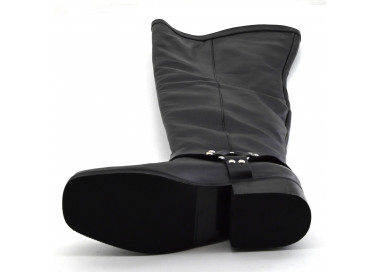 Texana corta en cuero y pelo combinado en piezas recorte superpuestas, con detalle de tachas en los bordes. Caña baja con piezas elastizadas en laterales. Fondo en suela con taco folia.