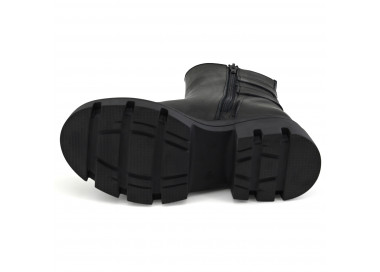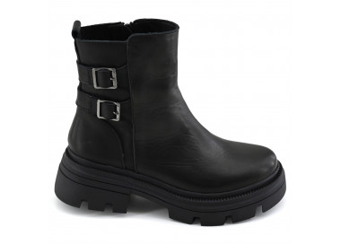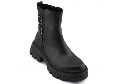 Botita de cuero con diseño estampado y detalle de tiras con tachas.