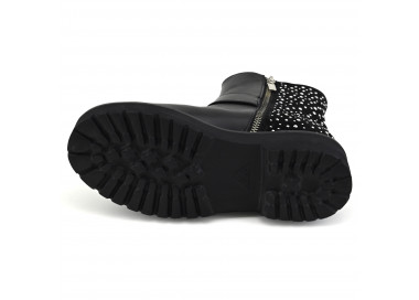 Bota borcego de cuero y forrería sintética. Caña de altura media con piezas elastizadas en laterales. Suela plataforma sintética con taco de 3.5 cm de altura.