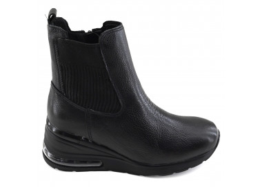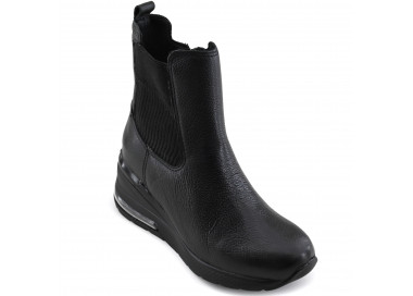 Bota Hush Puppies Dodó color negro, elaborada en cuero con elástico tejido del lado externo al tono para un ajuste cómodo y flexible. La plantilla de material sintético y EVA brinda una comodidad superior con identificación de la marca. Su fondo de material sintético (PU) cuenta con un estabilizador en el talón con la identificación Hush Puppies, proporcionando soporte adicional. Además, cuenta con la tecnología AIR, incorporada en un fondo de poliuretano con suelín de goma. Esta tecnología incluye una burbuja de aire ubicada en el talón que absorbe el impacto al caminar, ofreciendo máximo confort. La suela es resistente a la abrasión y al desgaste, siendo ideal para actividades al aire libre. Hush Puppies es la primera marca en aplicar la tecnología AIR en un calzado no deportivo, ofreciendo una combinación única de comodidad y durabilidad para el uso diario. La altura total de la suela en el talón es de 6 cm.