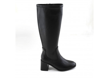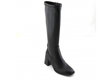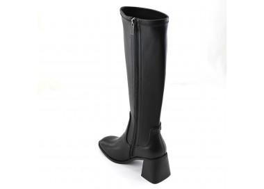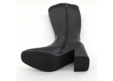 Bota confeccionada en cuero vacuno. La caña presenta una faja en cuero charol con grabado de marca SDR. Acceso por cierre interno. Suela vacuno y taco forrado a tono. Medidas: taco 11 cm de altura.