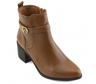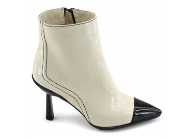Botineta de cuero de caña baja con doble cierre. Base sintética con taco foliado.