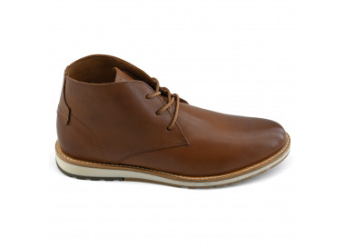 Botineta de cuero liso acordonada.