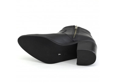 Botineta de cuero liso. Caña corta con cierre lateral metálico. Fondo en suela con taco chupete forrado.