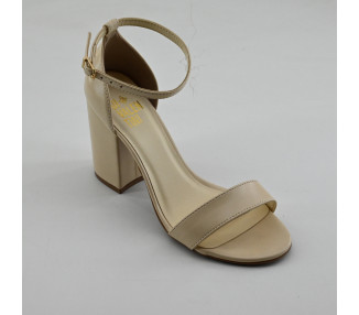Sandalia de estilo clásico en material sintético. Talonera y tira fina con pulsera. Taco cono forrado y suela sintética.
