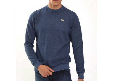 Buzo liso escote redondo con calce regular en flat back (tejido acanalado) de algodón, manga larga con puños de morley elastizado, al igual que en la cintura y cuello.
