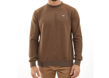 Buzo liso escote redondo con calce regular en flat back (tejido acanalado) de algodón, manga larga con puños de morley elastizado, al igual que en la cintura y cuello.