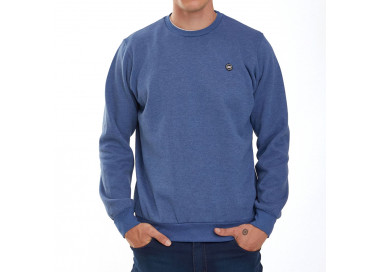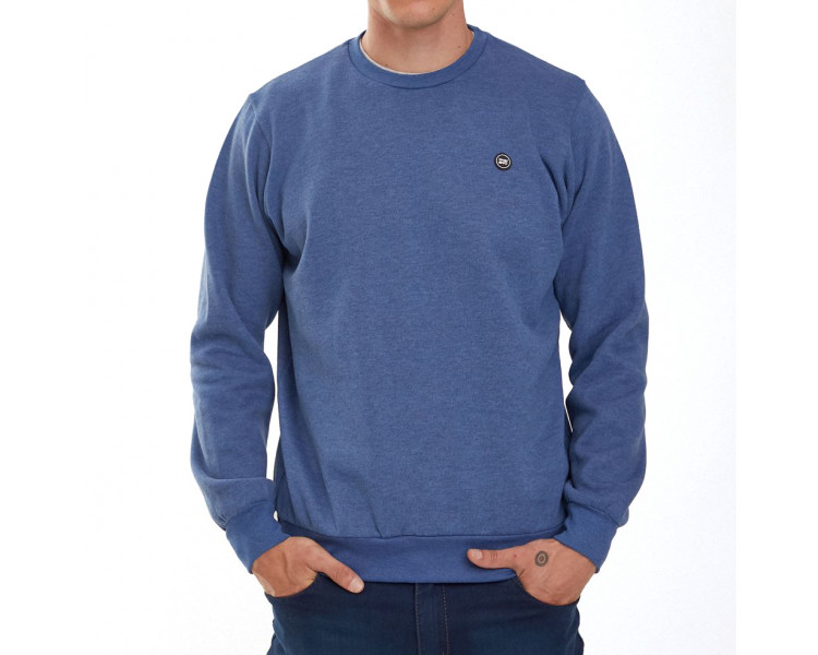Buzo liso escote redondo con calce regular en flat back (tejido acanalado) de algodón, manga larga con puños de morley elastizado, al igual que en la cintura y cuello.