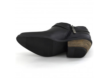 Botineta corta tipo charrito, en cuero, con acceso elastizado. Fondo en suela sintética con taco folia.