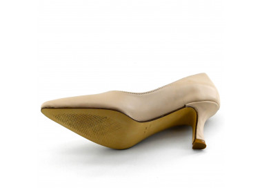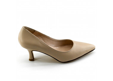 Zapato clásico con taco bajo estilizado. Confeccionado en cuero con base en suela.