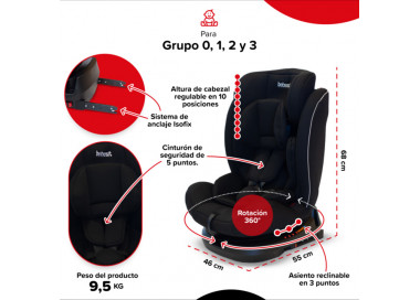Apta para los grupos 0, 1, 2 y 3: Desde 0 hasta 36 kg.