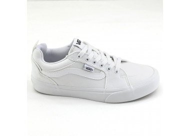 Exterior de cuero sintético con tiras de gamuza.