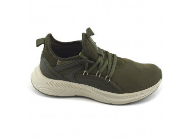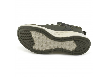 Capellada combinada en cuero, sintético y textil. Forrería y plantilla en material textil. Suela plataforma de goma.