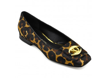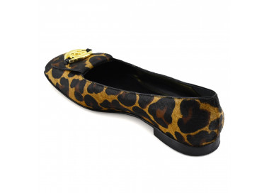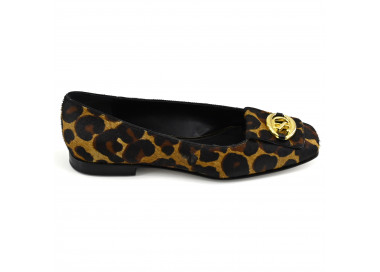 El mocasín flat Roxi es una combinación de estilo clásico y casual, con detalles distintivos como el pelo de leopardo y el herraje de marca SD en oro.