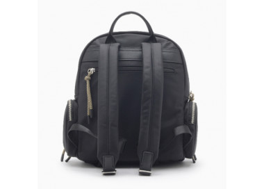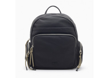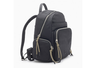 Bolsillo frontal con aplique de la marca y bolsillo trasero con cierre a tono.