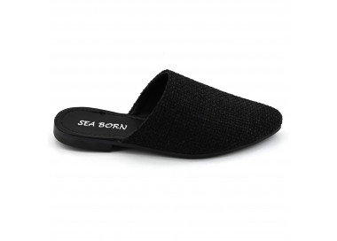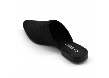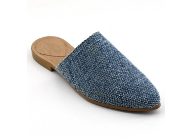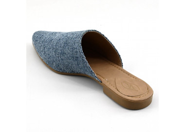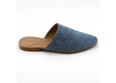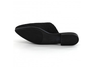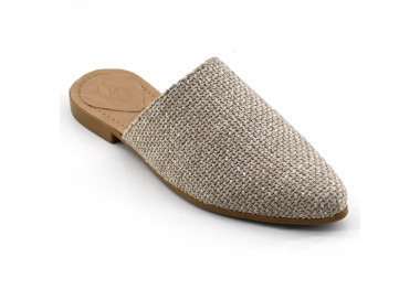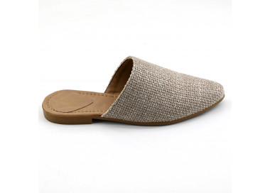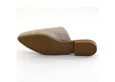 Zueco chato con faja croco en cuero y hebilla carey. Suela sintética baja con taco chato.