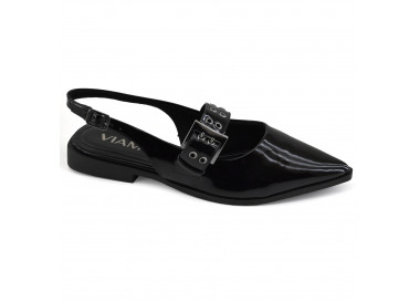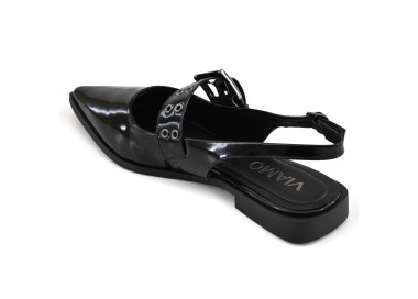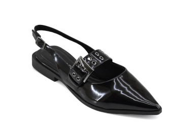 Zapato de charol con detalle de cinto con hebilla sobre empeine.