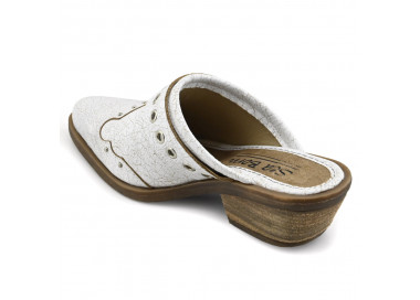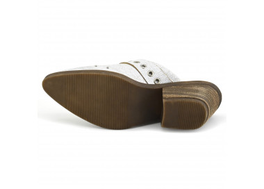 Detalle sobre empeine de faja con arandelas y pieza superpuesta con tachas en puntera.