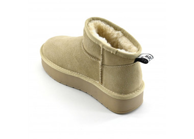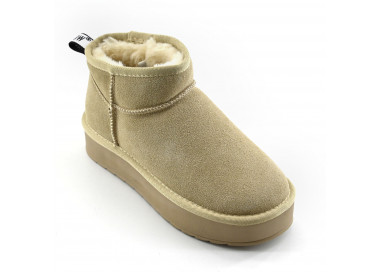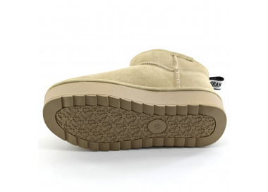 Pantubota confeccionada en gamuzado, suave al tacto. Interior de piel que brinda calidez y protege tus pies del fío. Plataforma de eva que la hacen liviana y cómoda. Altura de la base: 3 cm.