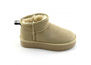 Pantubota de caña corta. Exterior en tela microfibra con interior forrado en piel sintética suave. Suela de goma.