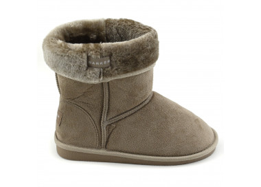 Pantubota de caña corta. Exterior en tela microfibra con interior forrado en piel sintética suave. Suela de goma.