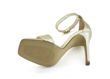 Sandalia de lurex con talonera. Acceso y ajuste mediante pulsera con hebilla. Fondo en suela sintética y taco forrado.