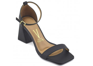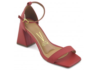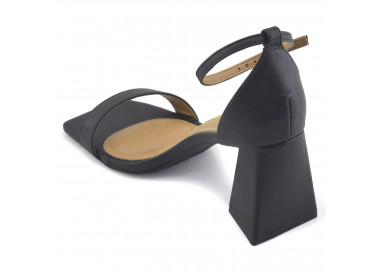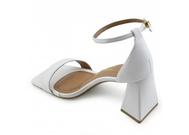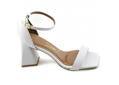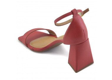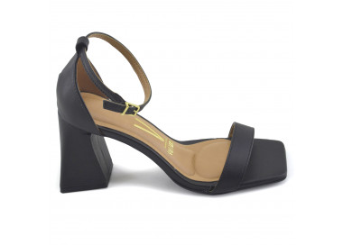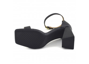 Base en suela sintética con taco alto forrado de base cuadrada.