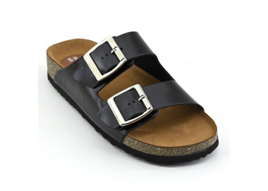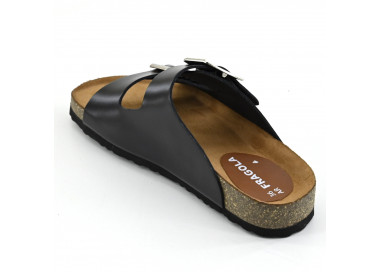 Sandalia zueco chato. Capellada de sintético. Faja regulable.