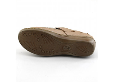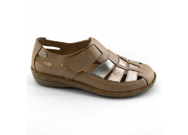 Sandalia de veraneo con suela de goma. Acceso y ajuste mediante fajas con velcro. Motivo estampado.