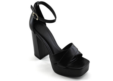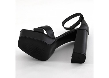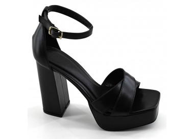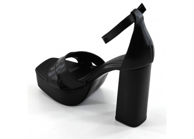Sandalia de gamuza y tiras con strass. Acceso y ajuste con hebilla en pulsera. Taco vainilla forrado y suela.