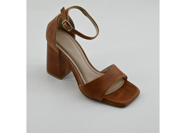 Sandalia metalizada de tiras con strass. Talón descubierto y pulsera con hebilla. Puntera cuadrada y suela con plataforma con suela. Taco cónico forrado y suelín sintético.
