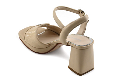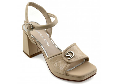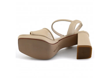 Plataforma y taco cuadrado forrado con suelín sintético.