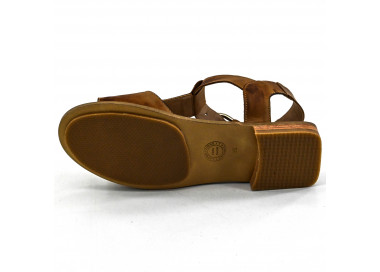 Sandalia de una faja con taco. Material sintético. Acceso y ajuste mediante tiras pulsera con hebilla. Plataforma y taco flare forrado con base sintética.
