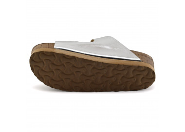 Base en suela sintética con taco alto forrado de base cuadrada.