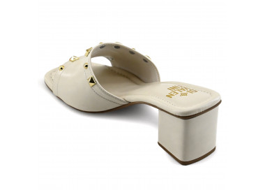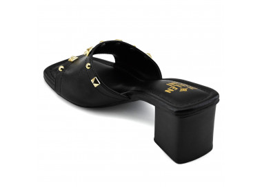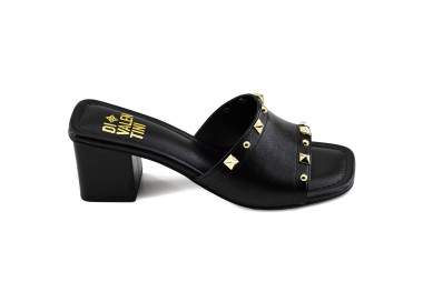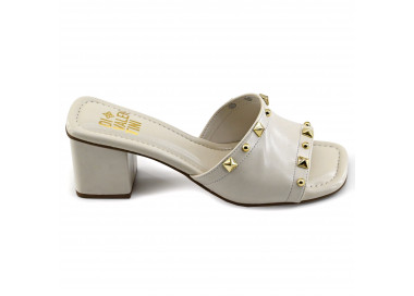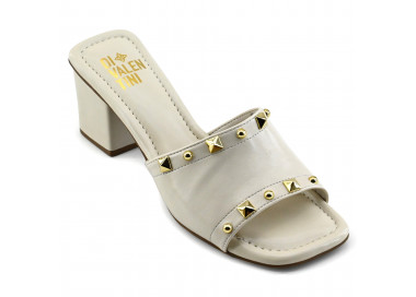 Sandalia metalizada con talonera. Suela sintética y taco forrado.