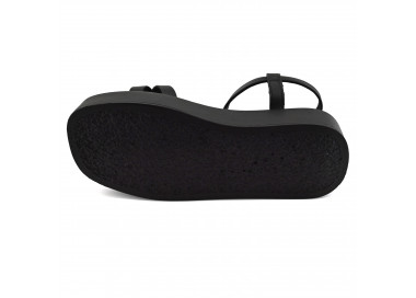 Sandalia estilo zueco con dos fajas y aplique central en piedra. Realizado en materiales sintéticos. Taco medio forrado y suela sintética.