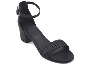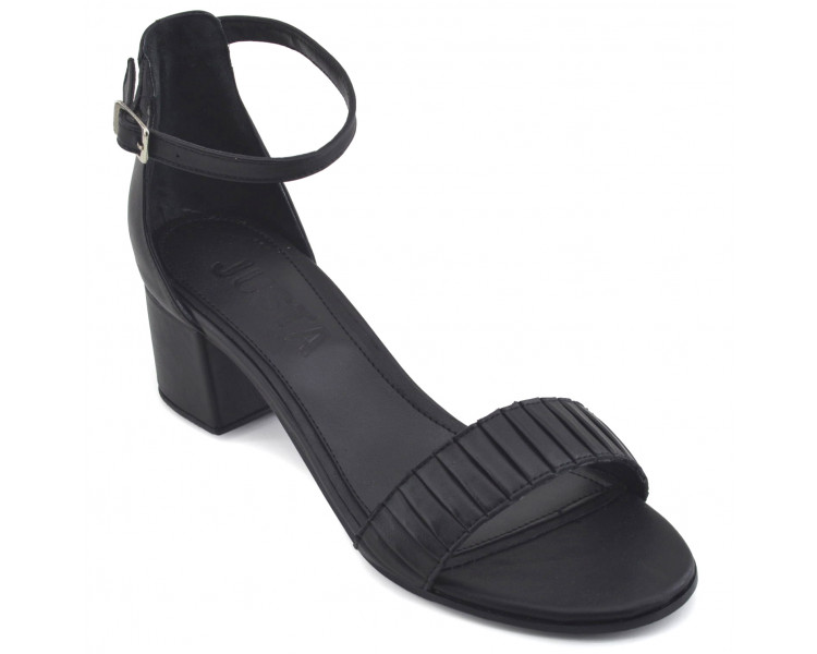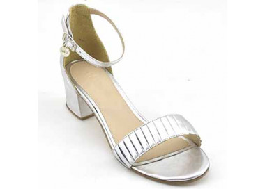 Base en suela sintética con taco alto forrado de base cuadrada.