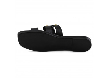 Sandalia de cuero graneado con base de goma. Capellada de faja principal y faja pulsera con abrojo. Plantilla confortable de goma flex con plataforma.