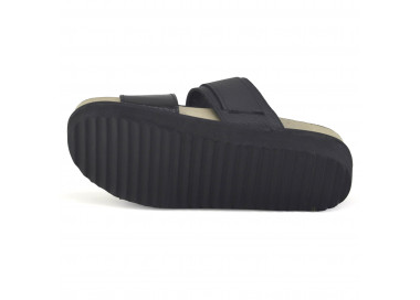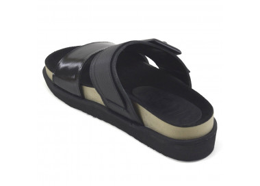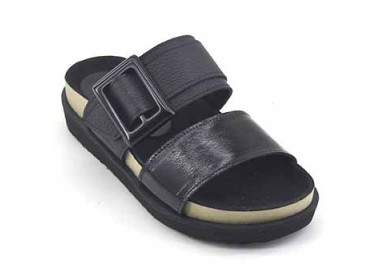 Sandalia de cuero con base de goma. Acceso con fajas elastizadas sobre empeine.