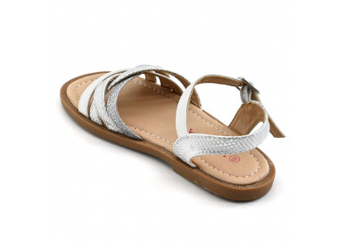 El diseño de tiras cruzadas dan un look moderno y súper delicado, sujetando el pie con mucho estilo. La pulsera con hebilla regulable en el tobillo asegura un calce perfecto y firme, dándole la confianza que necesita para caminar y jugar. Capellada de sintético.