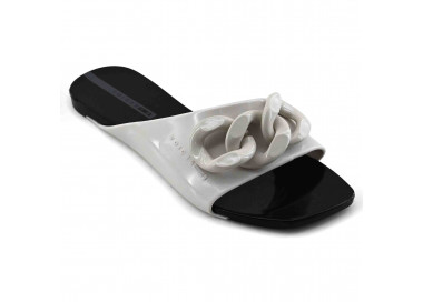Zueco de faja amplia con tachas prominentes. Realizado en material sintético.