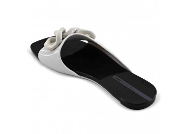 Sandalia tipo zueco de faja amplia con apliques de tachas. Realizada en material sintético. Fondo con taco cuadrado forrado y suela sintética.