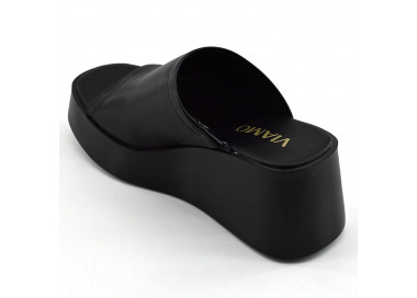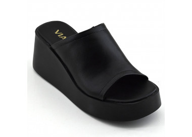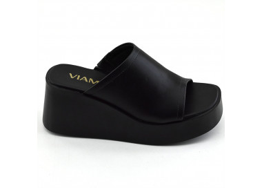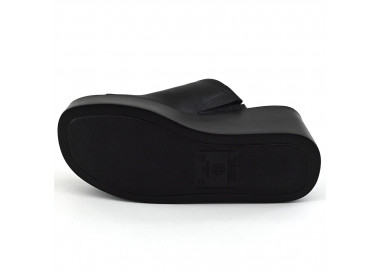 Sandalia de cuero sintético con plataforma. Minimalismo con altura. Esta sandalia está confeccionada en cuero sintético, con base inyectada liviana y plataforma cuña que estiliza sin resignar comodidad. Su diseño de capellada ancha cubre el empeine para un calce firme y cómodo.