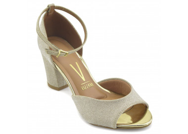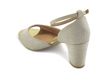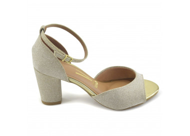 Sandalia metalizada con talonera. Suela sintética y taco forrado.