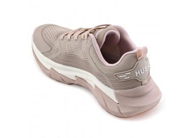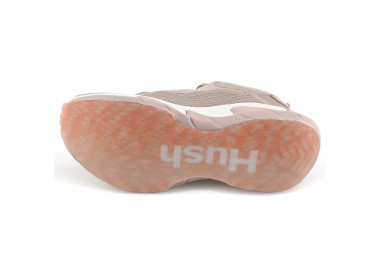 Aplique de goma en el talón con la identificación HUSH a contra tono en relieve.