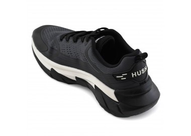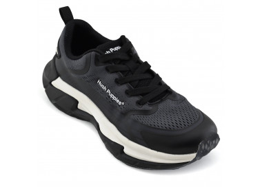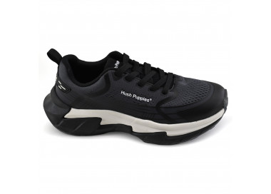 Detalles: identificación print Hush Puppies en el lateral y cordones bicolor; aplique de círculo transparente en relieve en lengua; cinta gross en el talón con detalle reflectivo para mayor visibilidad.
