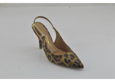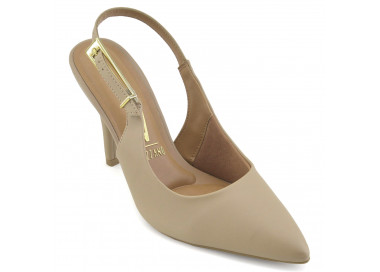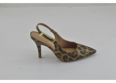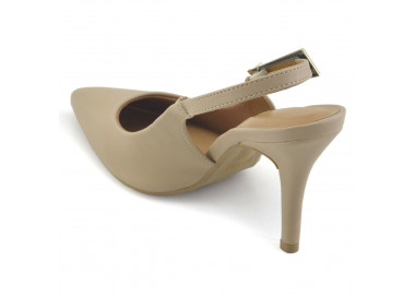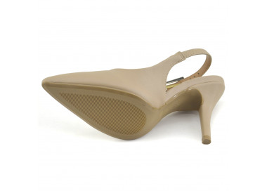 Zapato clásico de cuero. Cerrado con terminación en punta y suela con taco forrado.