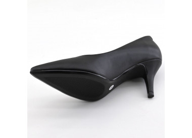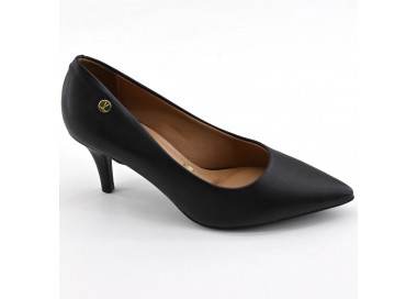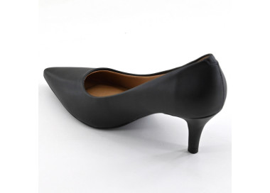 Zapato clásico de cuero. Cerrado con terminación en punta y suela con taco forrado.