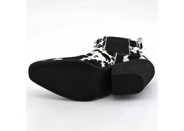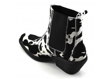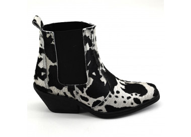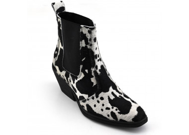 Texana de cuero con recortes. Caña media con cierre lateral. Suela sintética con taco folia.